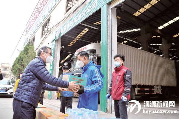 为快递员送上慰问品 记者 肖青青 摄