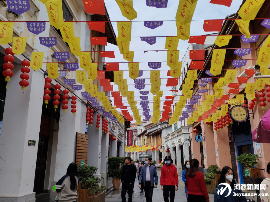 记者来到源城区太平古街,大红灯笼、小彩旗等装饰着古街,处处充满了新年的喜庆气氛,更显春意盎然。