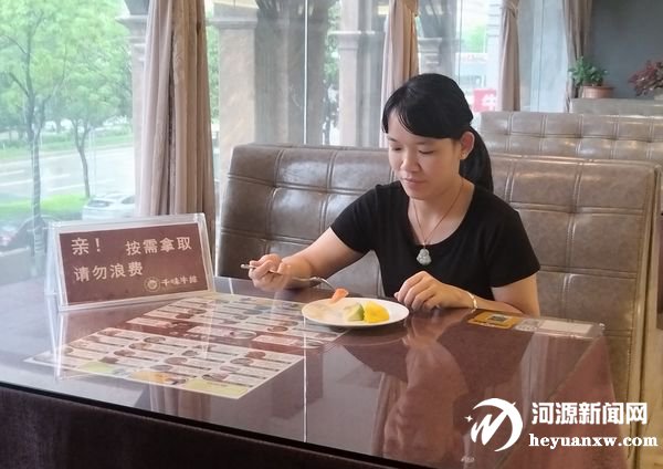 粒粒盘中餐,皆是辛苦换。昨日,记者先后走进建设大道千味牛排自助餐厅、华达街双叶餐厅等多家餐馆,看到墙上都张贴着文明用餐的标语和公益广告。在千味牛排自助餐厅的餐桌放置有“按需拿取 请勿浪费”的提示牌,呼吁大家拒绝浪费、文明用餐。