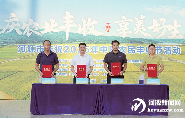 现场举行了农业项目签约仪式。河源市手信文化产业发展有限公司分别与中国农业银行河源分行、中国建设银行河源分行、中国邮政集团河源市分公司签署战略合作协议,将为河源农业构建一个“金融+物流+品牌”的产业赋能联盟,带动河源的青山绿水和农土特产品“出山入湾”;东源县人民政府与中国人保财险河源市分公司签订战略合作协议,携手为农业发展保驾护航;东源县柳城镇政府、蓝口镇政府分别与水稻制种公司签订土地流转协议,将进一步盘活农村土地资源,全面提升东源县制种产业综合实力。这些项目的签订,将进一步推动河源市农业产业持续高质量发展,促进农民增收致富。