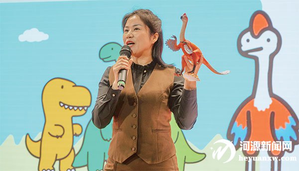 叶玉珍向观众讲解“黄氏河源龙”化石,探寻深远的历史记忆。