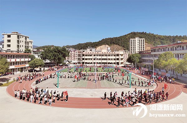 初冬时节,在龙川县上坪镇中心小学,孩子们在平坦整洁的校道上快乐运动,校园里洋溢着欢声笑语。