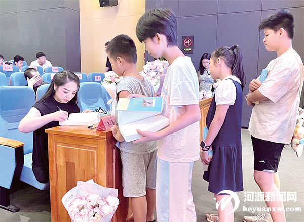 活动现场还举办了热烈的签书会。朱洛嬉耐心地为每一位读者签名,并与小书迷们亲切交流。不少小读者手捧新书,排队时忍不住翻阅起来,脸上洋溢着喜悦和期待。许多家长表示,这样的活动不仅让孩子接触到优秀的本土文学作品,更激发了他们对阅读和家乡文化的兴趣。