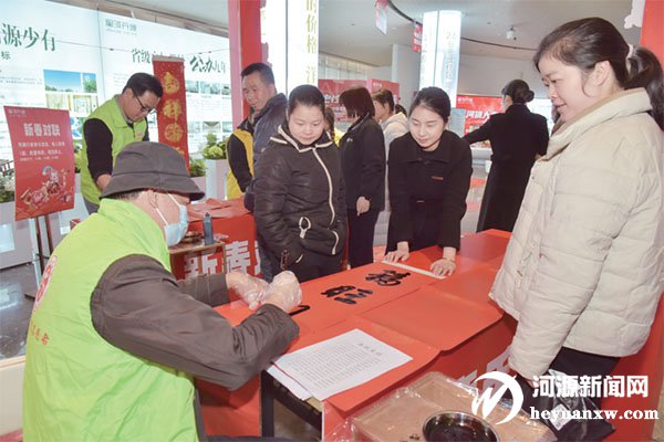 近日,“喜乐客家年”2025文化进万家义写义送春联活动先后走进源城区埔前镇、河源市图书馆星河丹堤分馆,为居民、农民工义写义送春联,提前送上新春祝福。此次活动由市文化广电旅游体育局、市文化馆、市体育彩票管理中心、市图书馆联合开展。活动现场,书法老师们奋笔挥毫,以书写春联为载体寄托着人们对新年的美好憧憬。当天,共送出春联200余副。