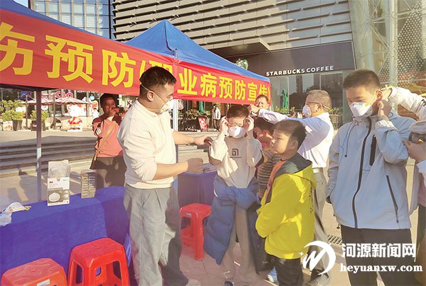 22日,河源市2025年度工伤预防(职业病预防)宣传活动在市区万隆城商业广场举行,现场通过发放宣传资料、设置宣传海报等方式向市民群众宣传工伤预防、职业病预防等相关知识,引导大家坚持预防为主,守护职业健康,进一步提升市民群众的防护意识,持续筑牢职业安全防护网,保障人民群众生命安全和身体健康。