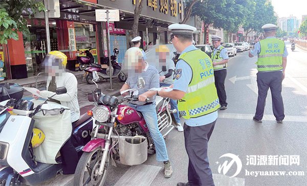 龙川交管大队在重点路段开展“一盔一带”主题宣传。