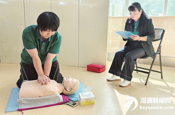 打字考核现场,键盘敲击声此起彼伏,调度员们紧盯屏幕完成文字输入,同时精准捕捉录音中的地址信息快速记录,在指尖翻飞间尽显高效准确的信息录入“硬”实力。在急救技能考核中,调度员围绕心肺复苏和AED的使用、止血包扎(包括环形包扎和止血带的运用)、婴儿窒息解除、成人及儿童的窒息解除等内容抽取考题,以讲师的身份及公众培训的方式,用专业规范的动作与细致入微的语言进行讲解。两大环节层层递进,既检验了调度员们的理论功底,又考验了实操水平,全方位展现业务硬功,为提升院前急救服务质量、保障人民群众生命健康安全筑牢坚实基础。