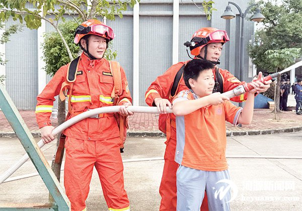 高科技消防设备吸引了学生们的目光。