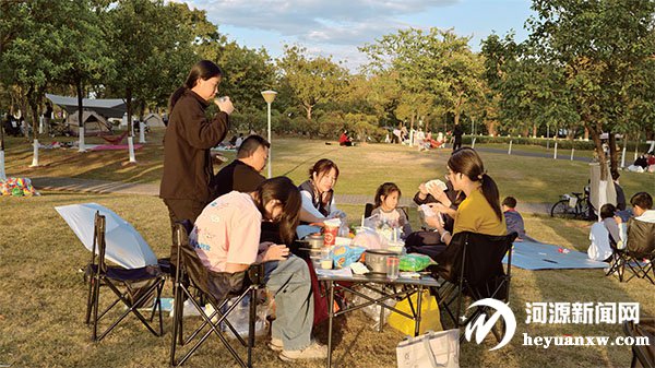 在市区东江湾公园里,市民在草坪上漫步、玩耍、野餐,暖阳下的美好尽收眼底。河源九里湖公园畔,不少市民三五成群或缓步散步、或健步快走,尽享阳光清风,一睹万绿湖湖光美景。