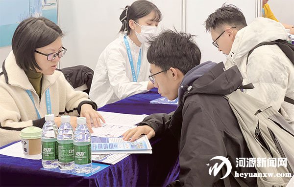 招聘会现场气氛热烈,在河源的部分企业展位前,不少求职者手持精心准备的简历,仔细浏览公司介绍和岗位简介,并向用人单位详细咨询企业情况、招聘需求及岗位发展前景等情况。