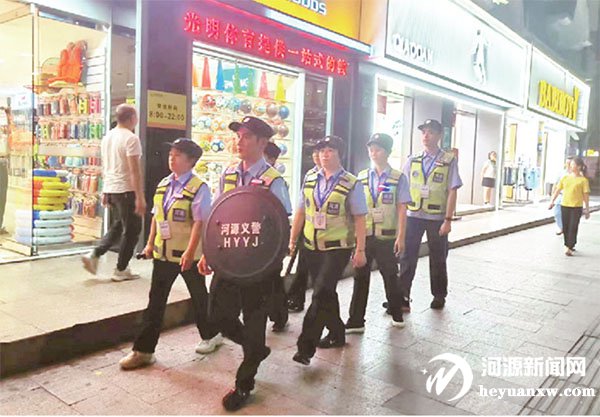 东埔街道兴源路社区“平安义警”志愿服务队开展治安巡逻。