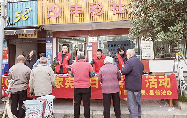 本报讯 记者 刘奇峰 通讯员 李惠波 近日,龙川县司法局、县普法办联合丰稔司法所、驻村律师、镇平安办等普法志愿者,利用集市人多时机,在镇街道开展“宪法宣传周基层行”暨“12·5”国际志愿者日普法宣传活动,将法律服务直接送到群众身边。