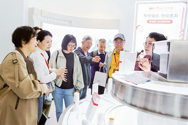 在贝泰妮中央工厂的展厅里,社长、总编辑们看到了以“薇诺娜”为核心的多个品牌产品,不少人是“薇诺娜”的消费者,对更新迭代的产品充满好奇。