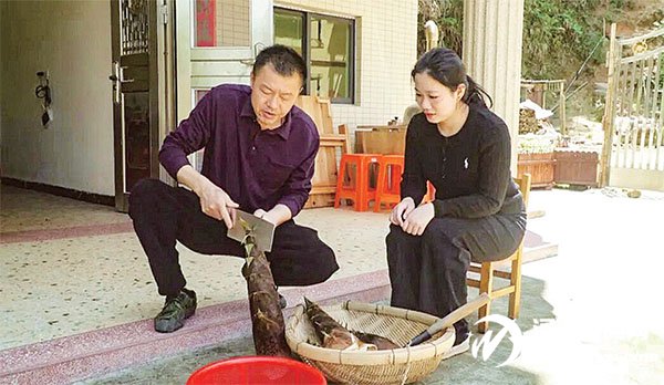 在上陵镇翠山村的竹林里,尖尖的春笋冲破土层,顶开落叶,尽情享受着阳光雨露。村民手持锄头,弯下身子,轻轻拨开地面的落叶和浮土,一株裹着褐色笋壳的春笋露出笋身。找准角度,一锄下去,再用力一撬,“咔嚓”一声脆响,一根约30厘米长的春笋便完整出土。