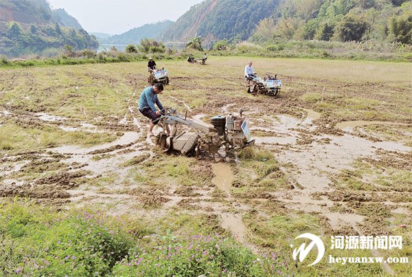 在农机的助力下,农户对田地进行深耕细作。