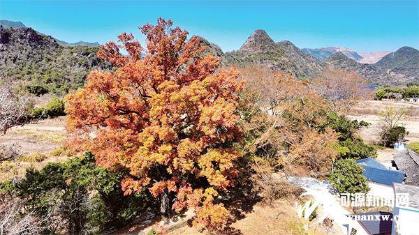 古枫红艳映村居 连平县内莞镇小洞村百年枫树迎最后观赏期