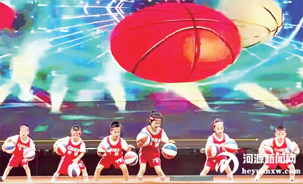 小朋友们在进行篮球表演。