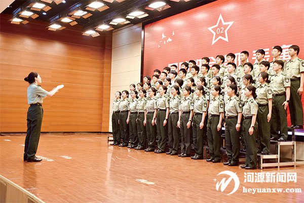 活动现场,气氛热烈而庄重。东江中学国防教育特色班合唱队带来《强军战歌最嘹亮》《淬火成钢》歌曲,激昂的旋律、铿锵的歌声,展现出新时代青年学子昂扬向上的精神风貌和炽热的爱国拥军情怀。随后,全场师生共同唱响《当那一天来临》,歌声响彻校园,凝聚起同心筑梦、护国强国的磅礴力量。