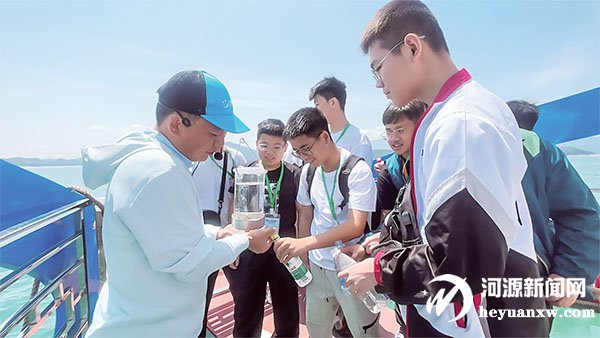 随后,研学团乘船游览万绿湖,沉浸式感受“绿水青山就是金山银山”的生动实践。湖光山色相映成趣,水质澄澈见底。讲解员全程细致介绍了万绿湖的核心战略地位——作为东深供水工程的核心调蓄水库,万绿湖每年稳定向东江输水60至70亿立方米,对保障香港、深圳、东莞等大湾区城市的供水安全具有关键作用。“一江水连粤港,一家心同守护。”在湖中心区域,研学团还开展了现场取水检测万绿湖水质的小实验。香港青年们直观见证了万绿湖Ⅰ类水质的优良品质,近距离了解河源数十年如一日推进生态治理、守护水源地的坚持与付出,深刻体会到“生命水、政治水、生态水”的厚重内涵。