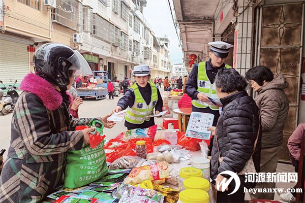 民警走进集市,进行交通安全宣传。