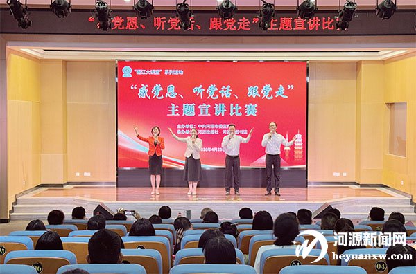 本报讯 记者 谢梦君 昨日,2026年河源市“感党恩、听党话、跟党走”主题宣讲比赛决赛在市图书馆举行,来自全市各行各业的10名选手从层层选拔中脱颖而出,登上决赛舞台,用朴实的群众语言,深情讲述了河源干部群众感恩奋进、苦干实干的鲜活故事,生动展现了新时代河源儿女“感党恩、听党话、跟党走”的坚定信念。